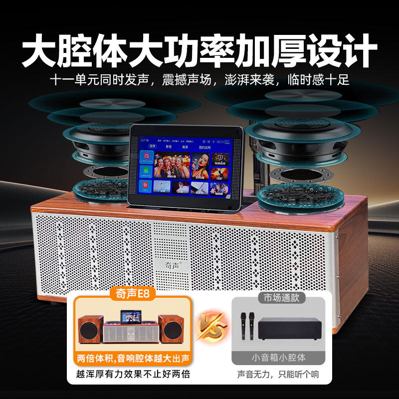 奇声E8 K歌音响一体机WIFI蓝牙语音点歌机家庭影院音箱两个低音炮