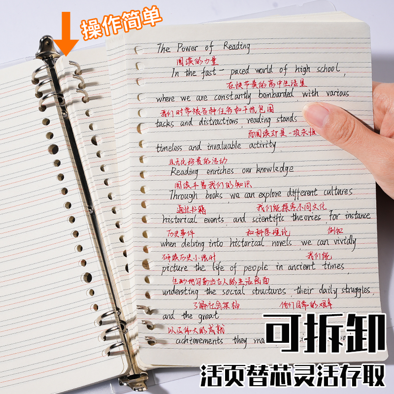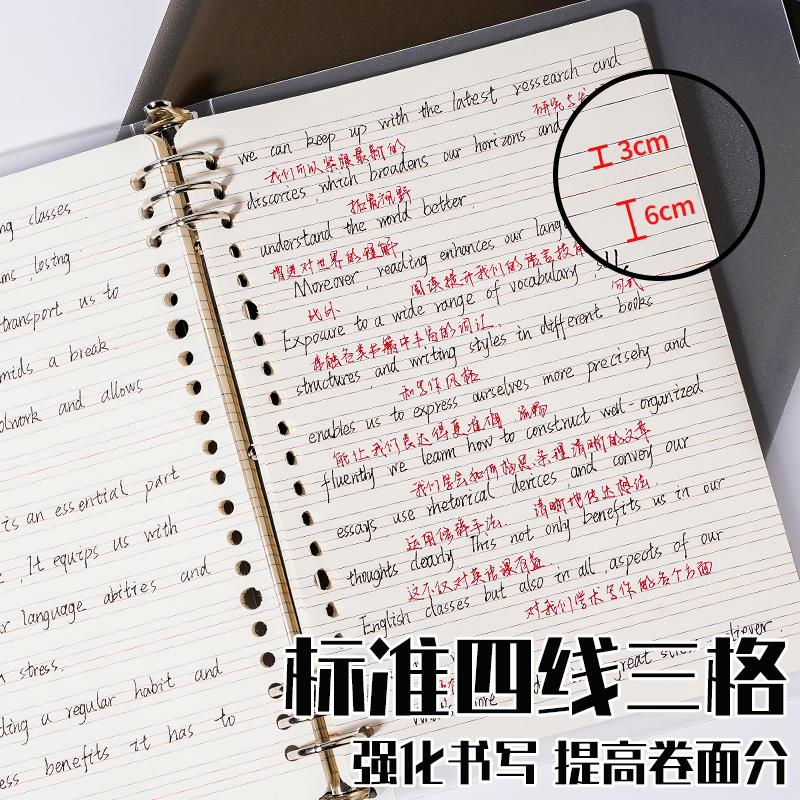 晨光英语不硌手活页本B5替芯加厚A5初高中学生单词本四线三格单词练习本可拆卸可替换内芯知识点英语笔记本