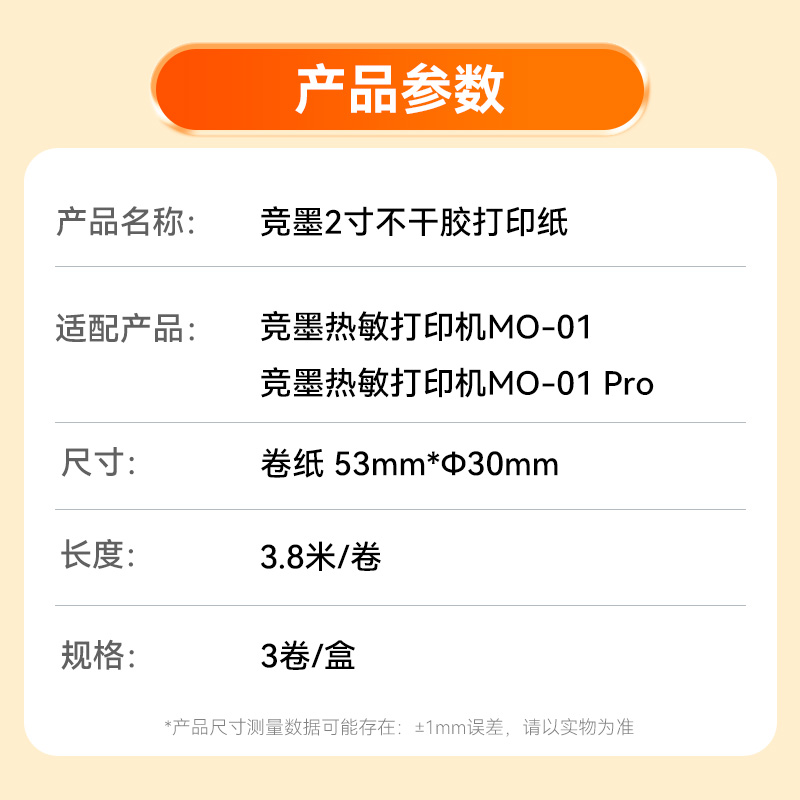竞墨2寸/3寸热敏纸不干胶打印卷纸/不含双酚A 错题MO-01专用家用学生作业试卷便携式打印机A4书写纸长期留影