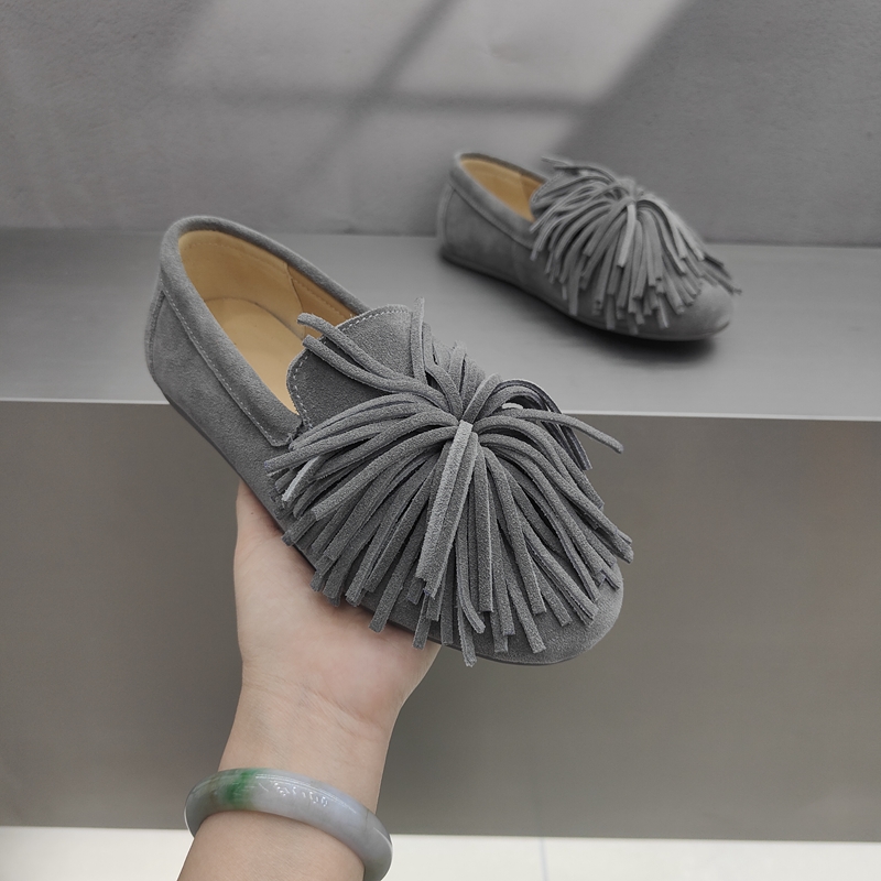 磨砂皮流苏乐福鞋女欧货2025春新款一脚蹬平底单鞋豆豆鞋女鞋彩色