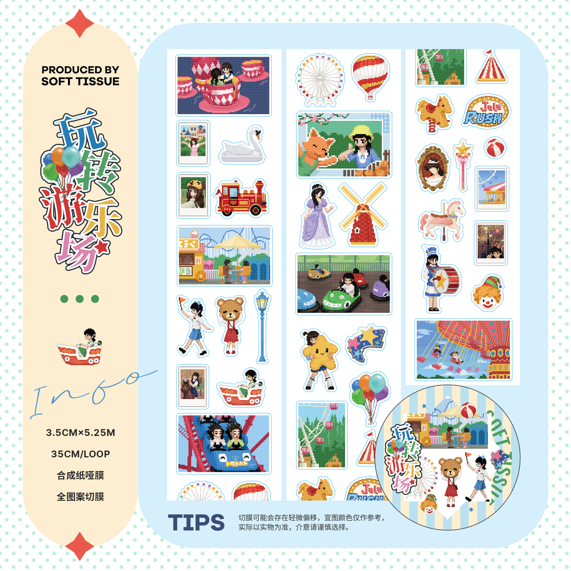 软组织分装套圈圈基础几何四叶草贴纸卷切膜点缀贴纸胶带