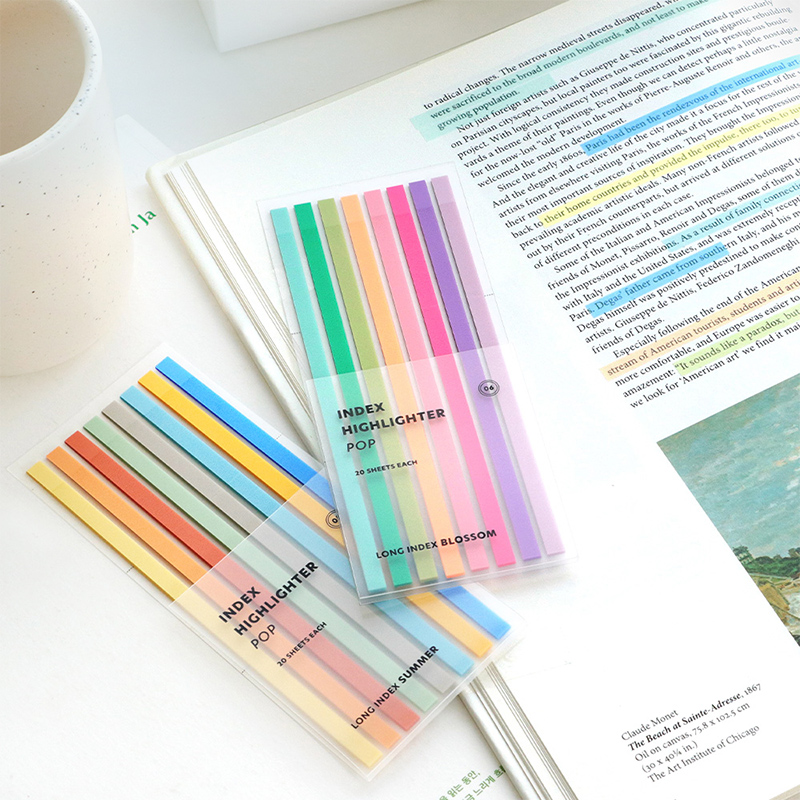 韩国ICONIC POP荧光色长款索引贴套装半透明材质等分线易撕设计
