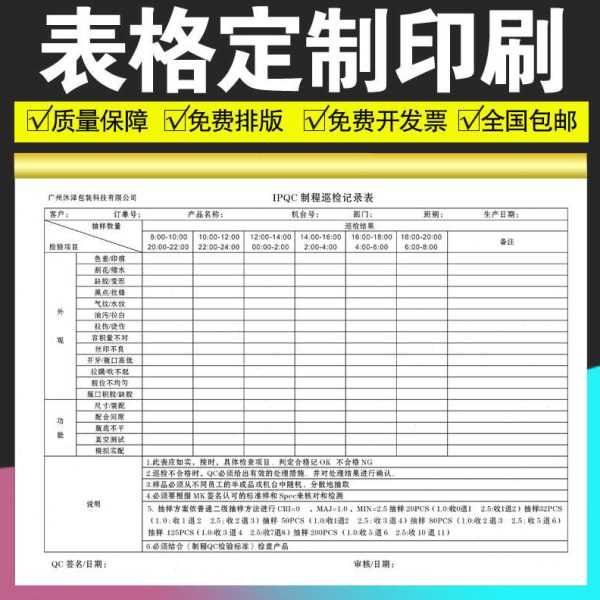 厂促表格定 制IPQC制程巡检记录表记账本生产日报表登记本A4合同