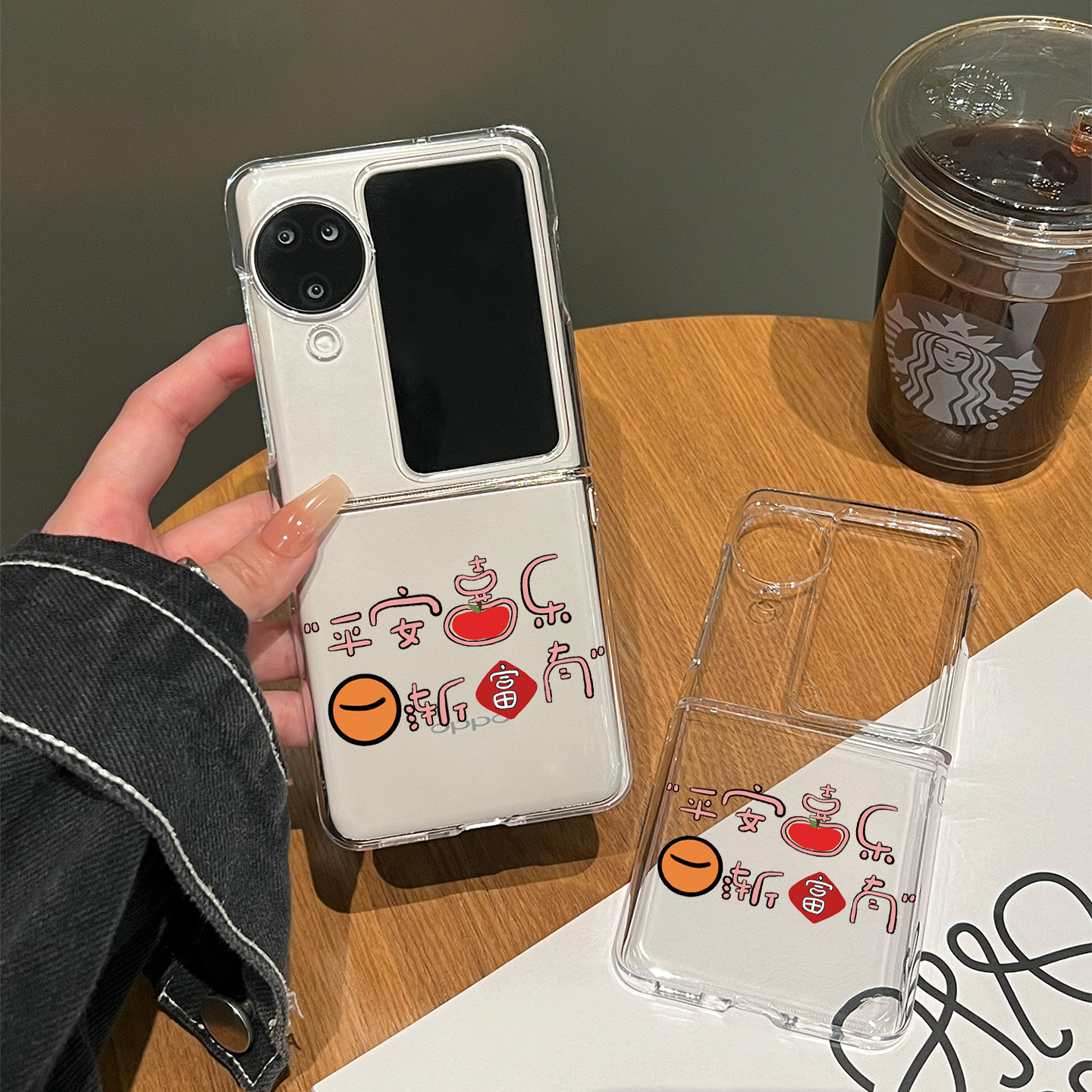 适用oppofindn3flip简约女款手机壳新款findn3flip中国风卡通保护套findn2flip日渐富有n2flip折叠屏透明超火