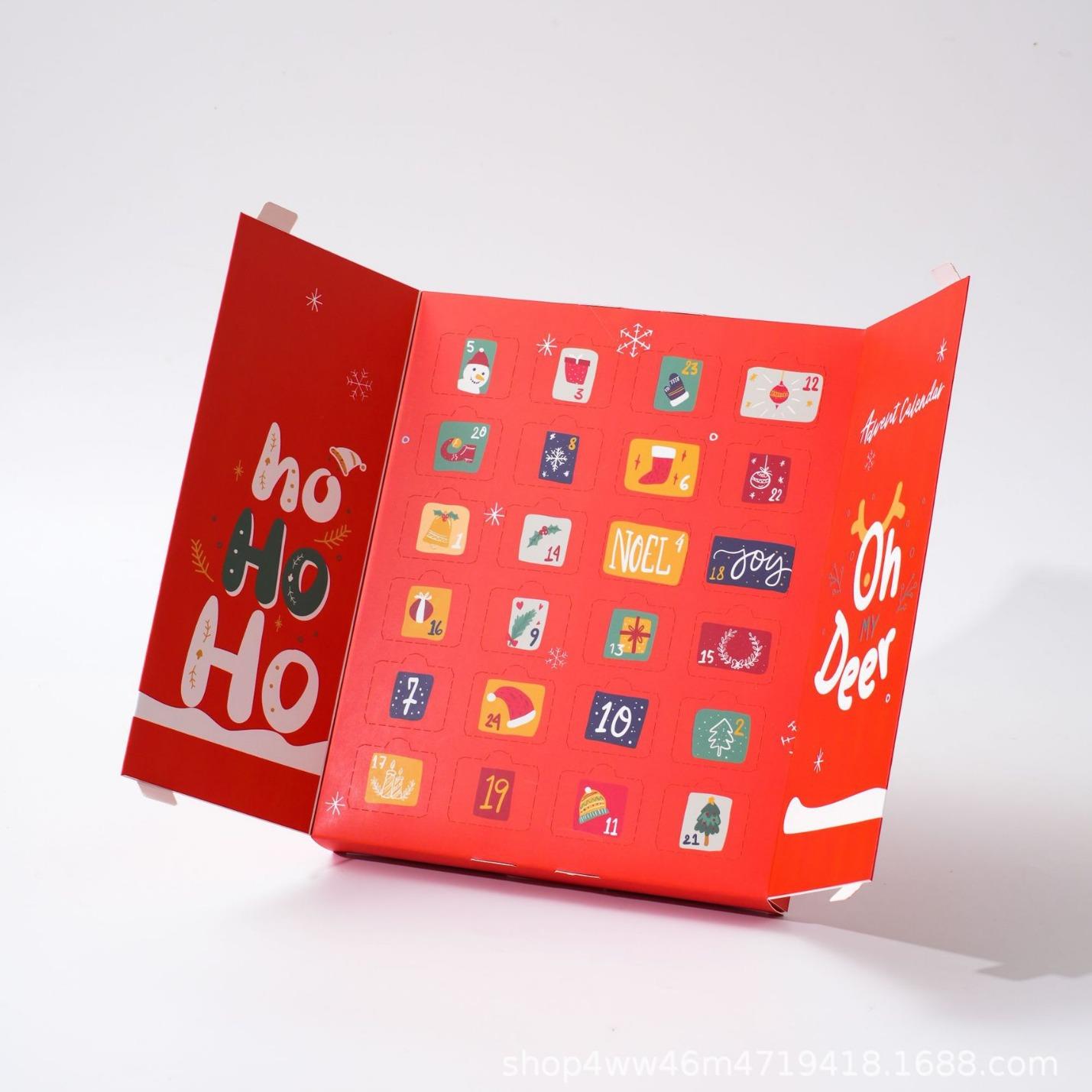 新款圣诞节日历盒双开门惊喜盲盒倒数24天降临日定 制对开门礼盒