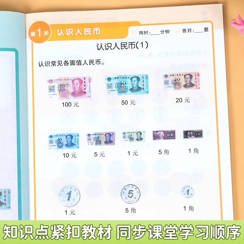 小学生认识人民币元角分专项训练钟表和时间数学思维训练长度单位换算的学习一年级二三年级上册口算题卡天天练练习乘除法每日配套