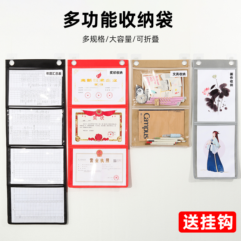 A4绘本图书汇总表收纳挂墙展示奖状荣誉证书通知纸张收纳展示框多规格挂袋透明墙挂防尘免打孔整理神器不伤墙