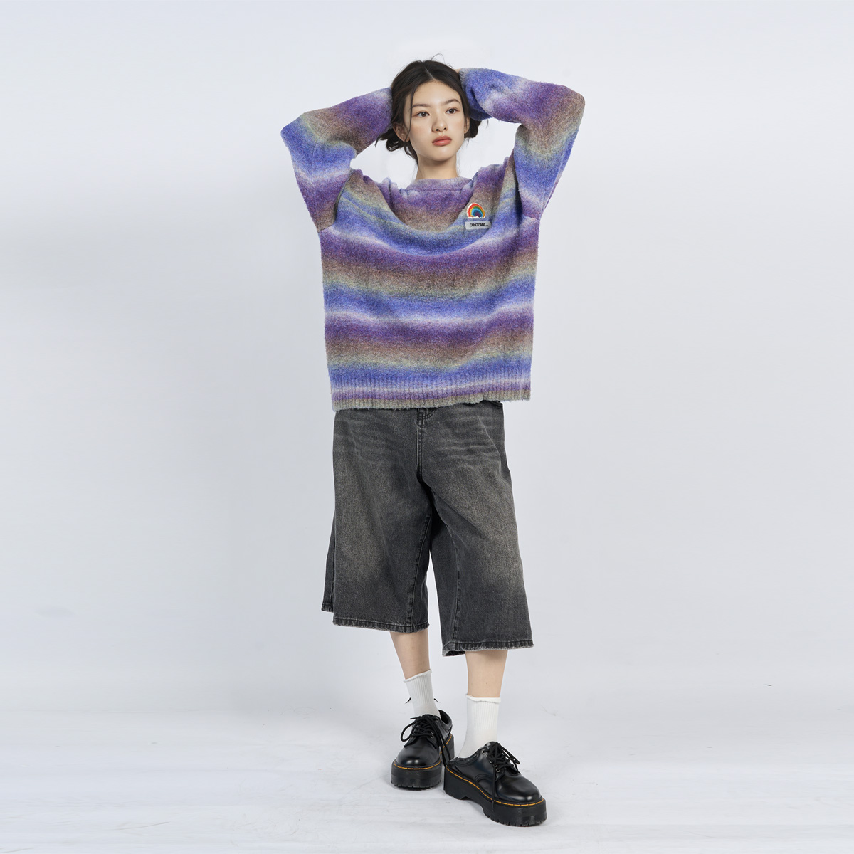 【所有爸妈的幸福家直播间】CANOTWAIT圆领彩虹毛衣男女秋冬针织