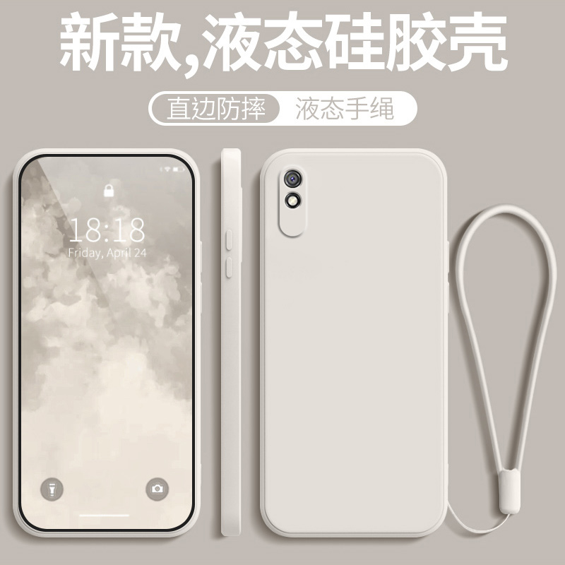 适用红米9A手机壳新款小米redmi9A的保护套m2006c3lc老人用送钢化膜A9带挂绳防摔全包女软男液态硅胶黑色外壳