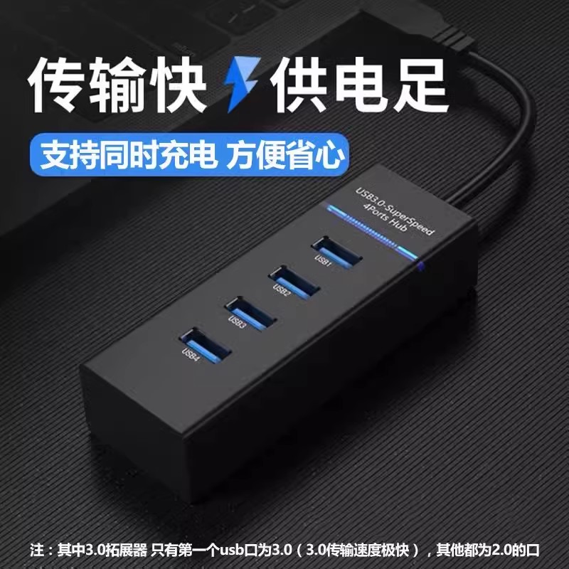 牧佳人usb3.0扩展器多口分线器type-c接口车载充电笔记本电脑转换一拖四扩展坞hub集线器usp拓展器立式加长