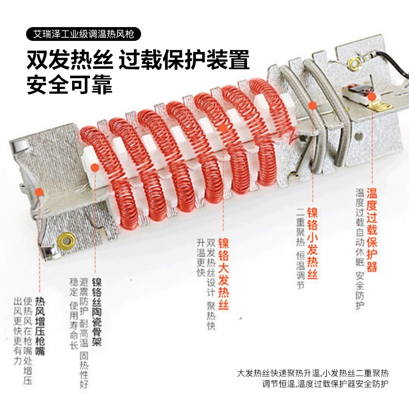 数显工业级热风枪烤枪大功率小型贴膜烘枪工业热缩膜吹风机调温