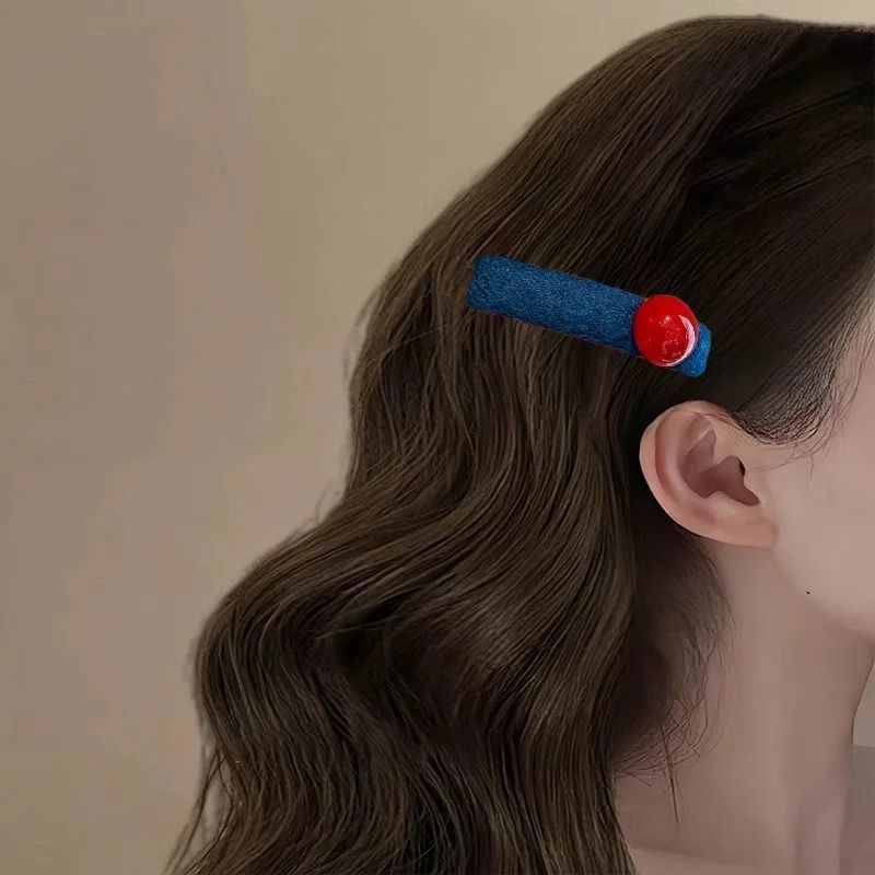 2025新款蓝色撞色红珠子发夹女小众发饰侧边夹对夹碎发刘海夹头饰