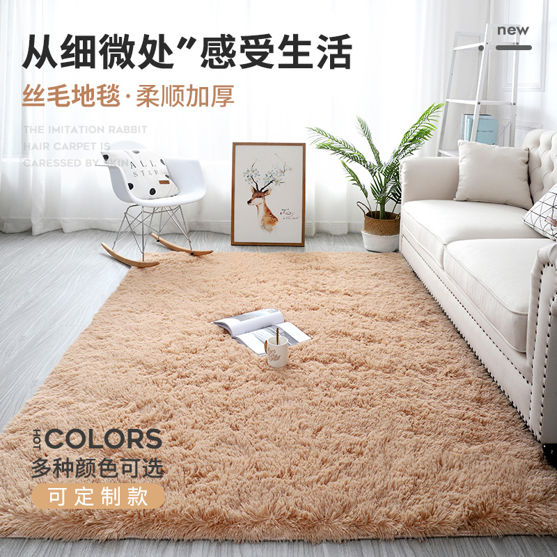 新款可机洗丝毛客厅卧室茶几地毯奶油风少女床边卧室满铺毛绒地垫