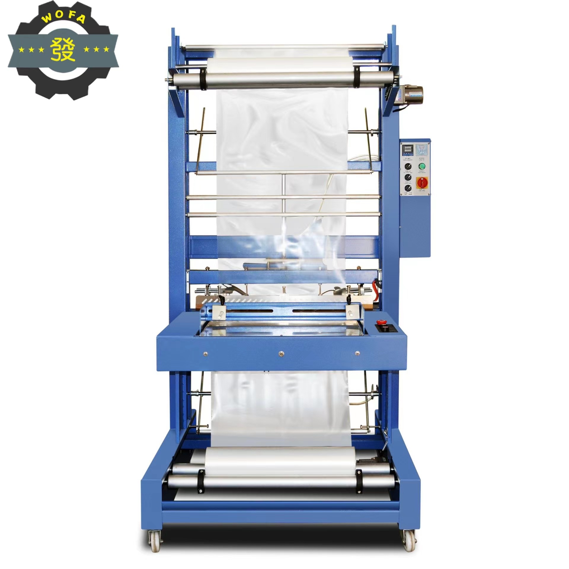 山东沃发尿素液收缩机6040型 纸箱封膜机玻璃水袖口式包装收缩机