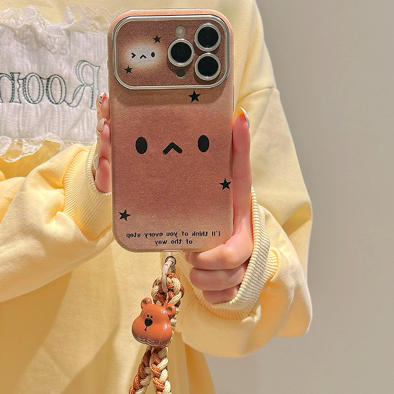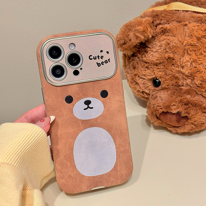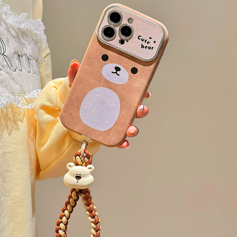 秋冬可爱卡通棕色小熊适用iPhone16promax手机壳苹果15新款14pm大视窗13带挂绳16pro少女14小众15pro全包外壳