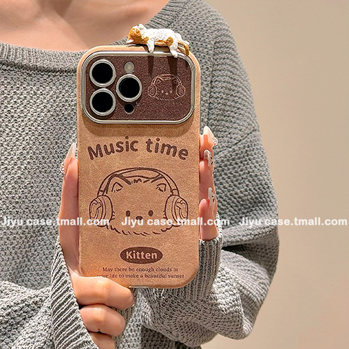 秋冬复古棕可爱立体猫咪适用苹果16promax手机壳iPhone15新款14pro大视窗13卡通16pro韩风15promax小众12全包