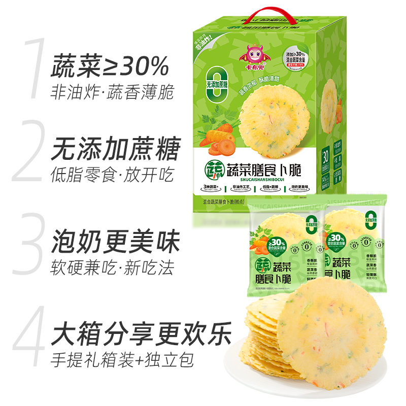 蔬菜善食卜脆粗粮非油炸风吹饼无添加蔗糖低脂健康儿童休闲小零食