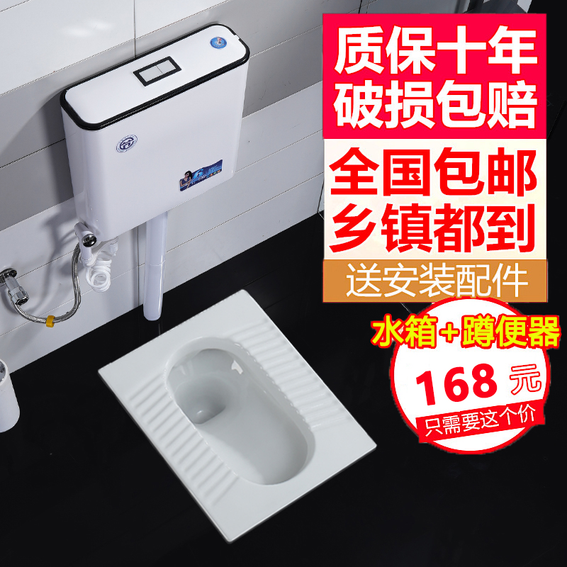 家用蹲便器冲水箱卫生间陶瓷蹲坑式厕所卫浴防臭大便盆便池带盖