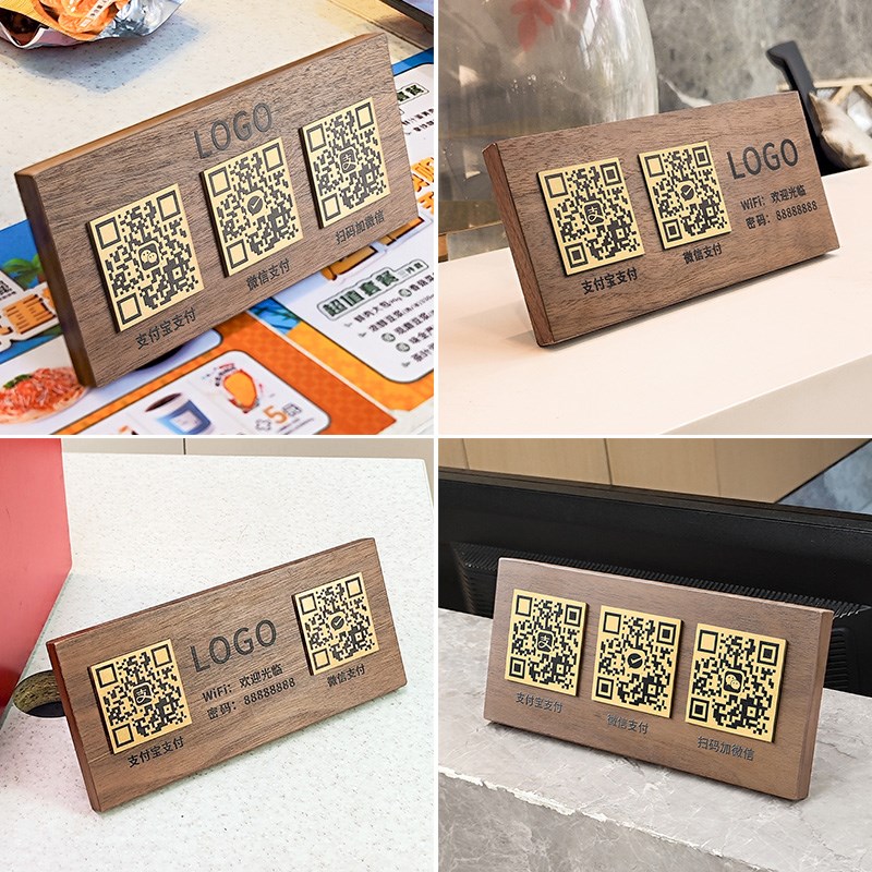 现货速发收款二维码展示牌高端酒店饭店前台收银台创意个性木质收