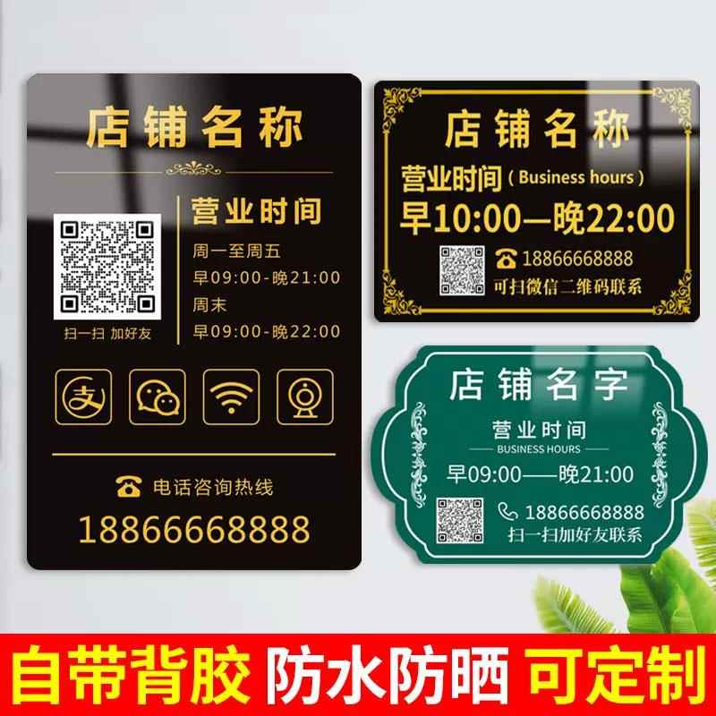店铺营业时间牌告示牌定制广告牌提示牌上班时间提示牌挂牌亚克力门牌玻璃贴纸工作时间挂牌店铺公示牌吊牌