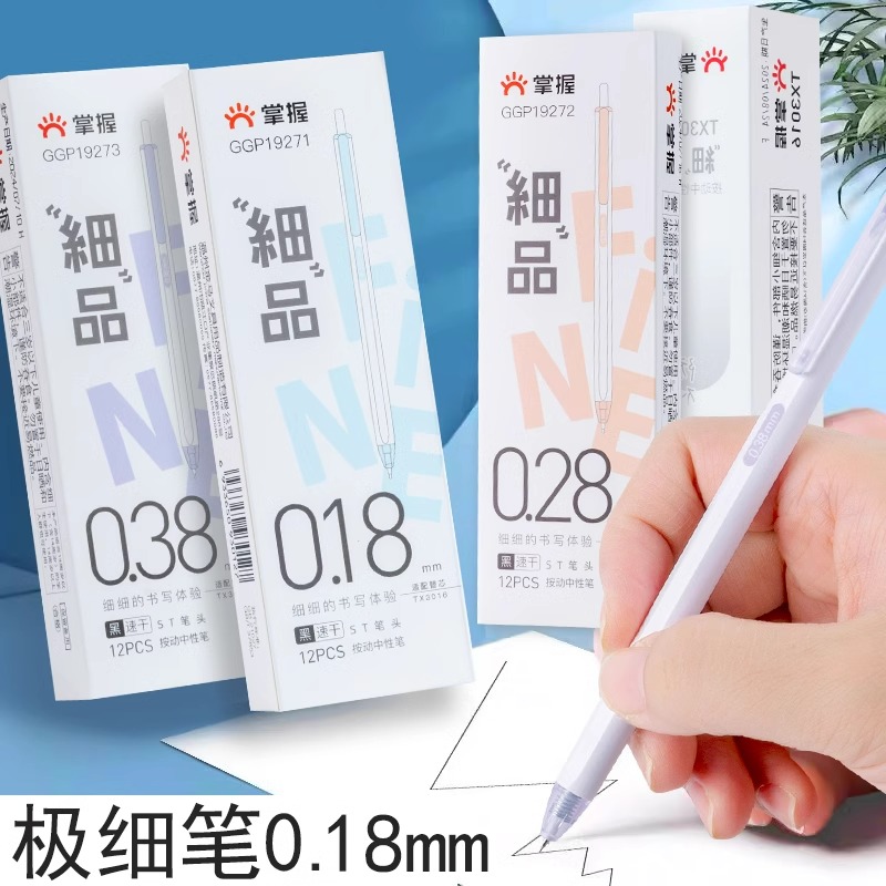 掌握0.18按动笔芯学生专用黑色极细中性笔0.28st笔头刷题笔碳素水笔速干顺滑0.38按压式圆珠笔替换芯考试签字