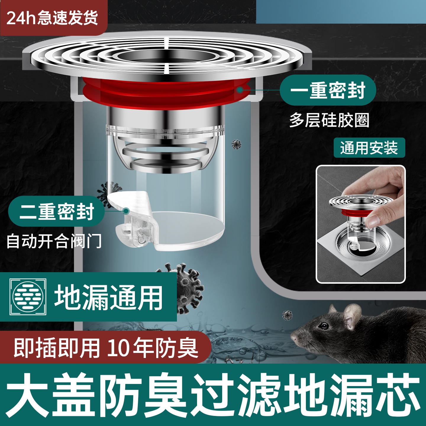 卫生间通用地漏防臭器厕所下水道防返臭神器下水管封闭盖过滤网芯