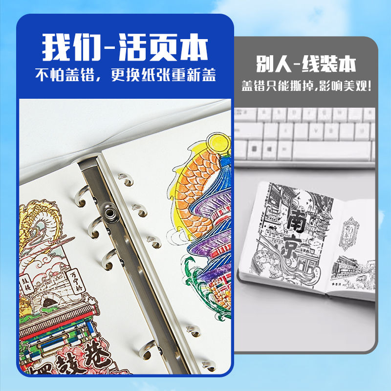 A6活页旅行盖章本随身便携可拆卸小旅游集章收集册纪念手帐本空白笔记本本子画画博物馆故宫文创打卡景点印章