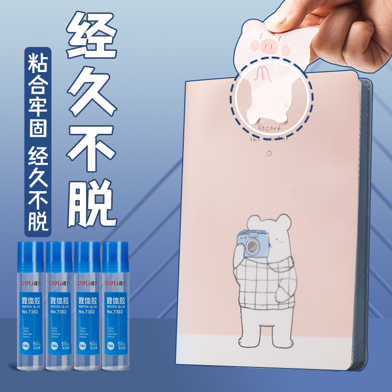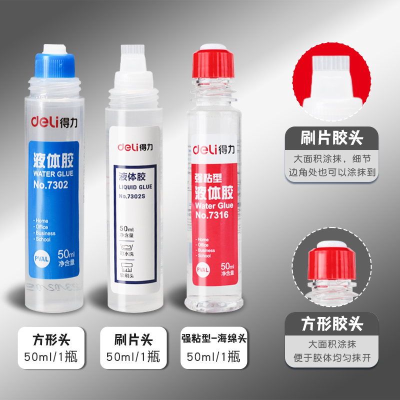 6支得力液体胶快干办公中号透明液体胶水50ml手工用DIY制作125ml办公胶水带刷子包邮