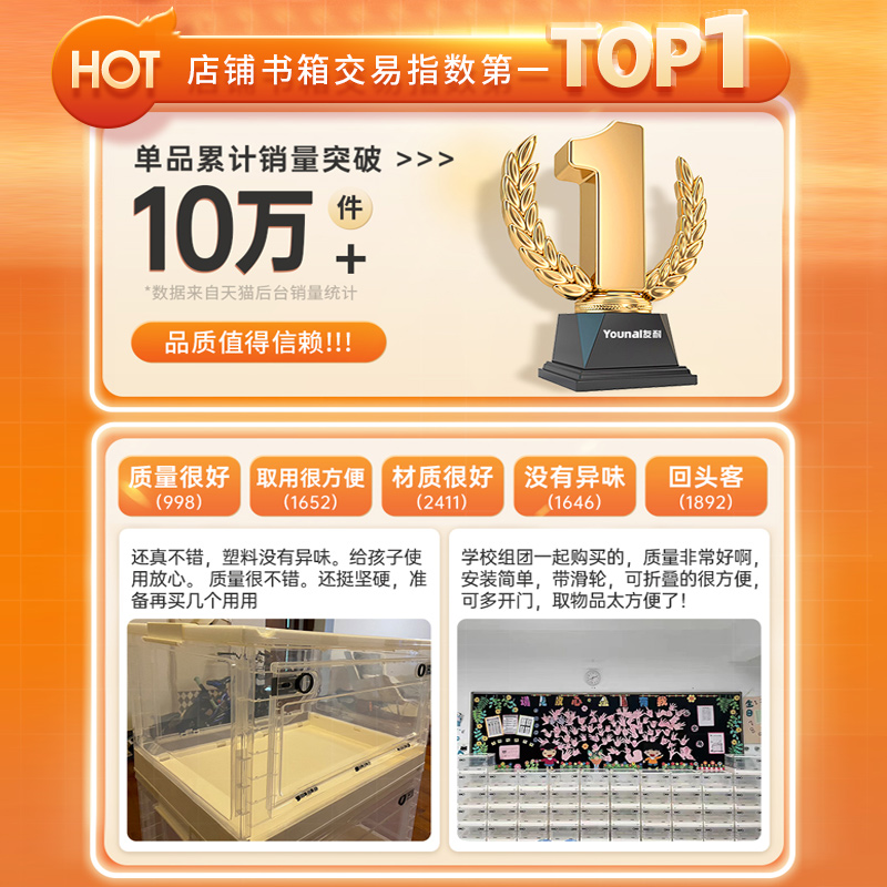 友耐收纳箱书箱学生教室装书整理书籍神器折叠透明箱子书本储物箱