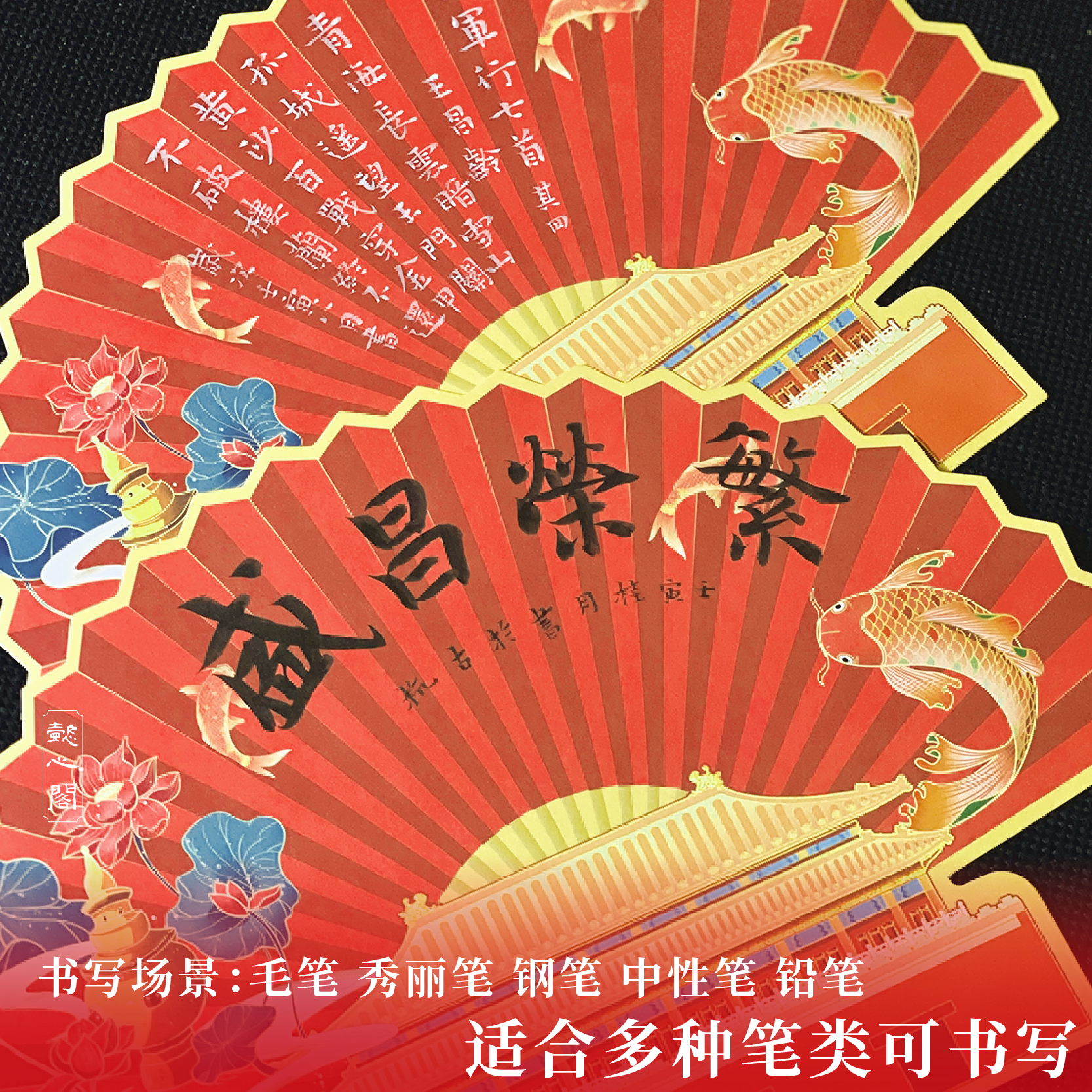 酷的双面硬笔书法团扇硬笔书法扇子加厚田字格五言七言专用香影摇波双面书写文创团扇创意国风扇子茉莉牡丹