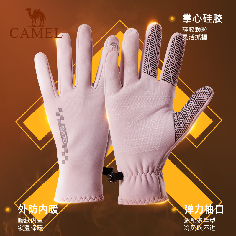骆驼户外骑电动车手套女冬季防风保暖内里加绒骑车手套防水可触屏