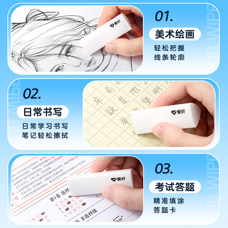 爱好集屑三角橡皮擦小学生专用擦字集线擦拭成条干净不留痕2B少屑橡皮儿童素描美术橡皮擦简约高颜值