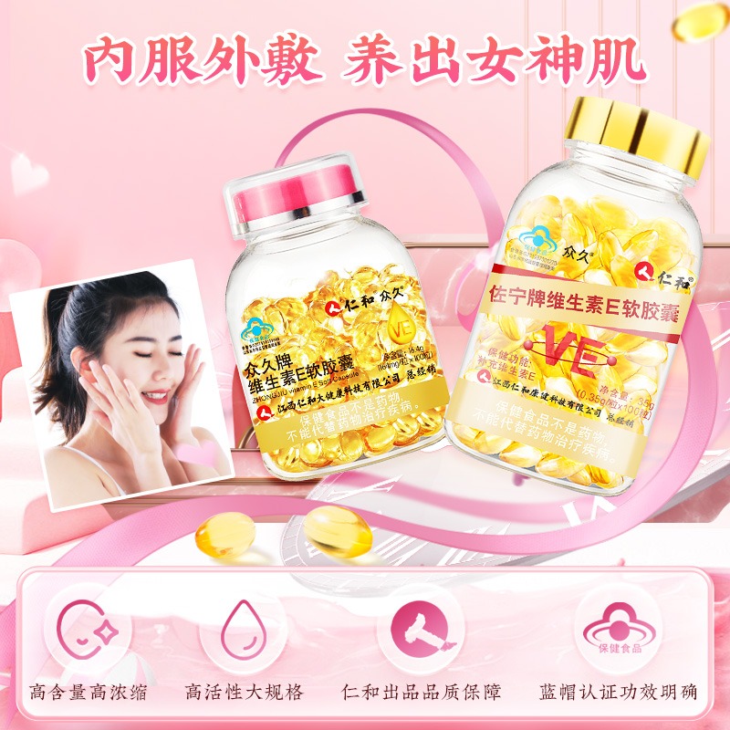 仁和维生素E软胶囊ve维e官方旗舰店正品油搭c片维生素e内服褐斑