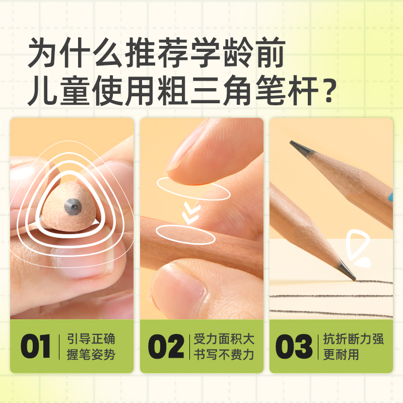 Nusign纽赛小绿杆黑木铅笔hb小学生专用一二年级学习用品正姿高颜值加粗铅芯无铅毒得力书写绘画矫姿素描初学