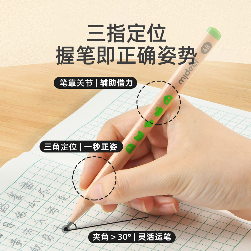 mideer弥鹿多肉铅笔小学生2b考试专用正品4b儿童初学者幼儿园启蒙一年级铅笔涂卡笔文具用品三角杆6b炭笔