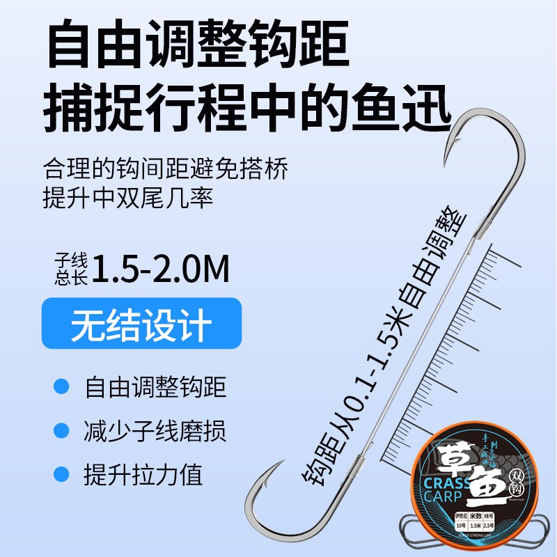 草鱼子线双钩成品鱼钩绑好鲢鳙翘嘴大物专用加长子线行程加长鱼钩
