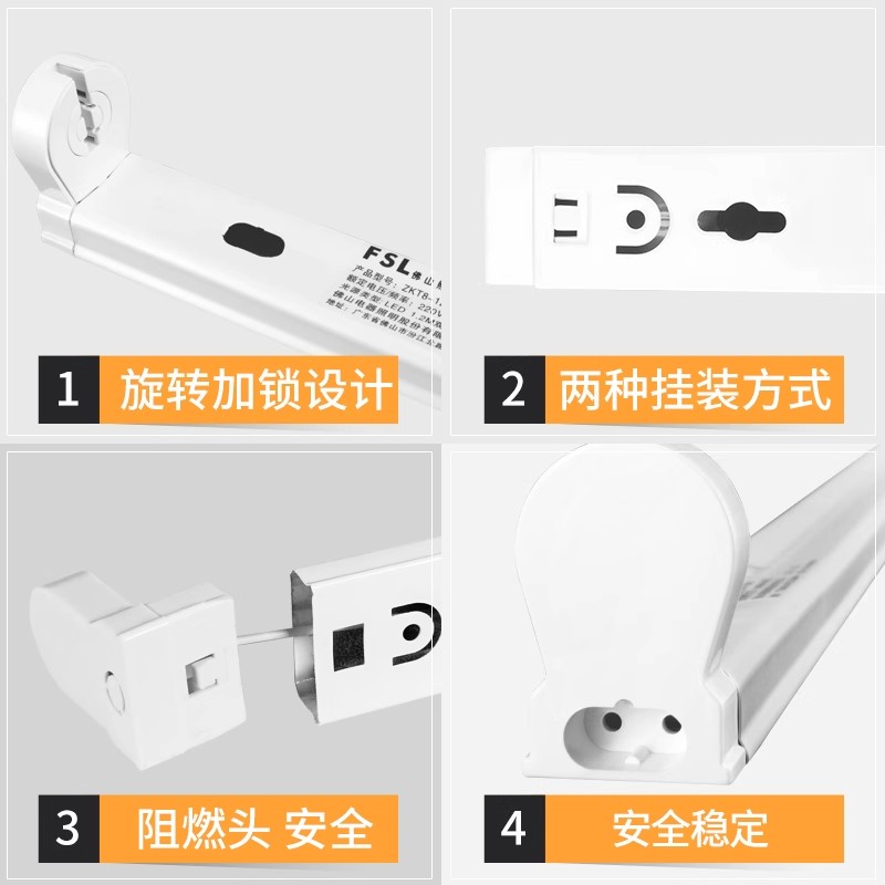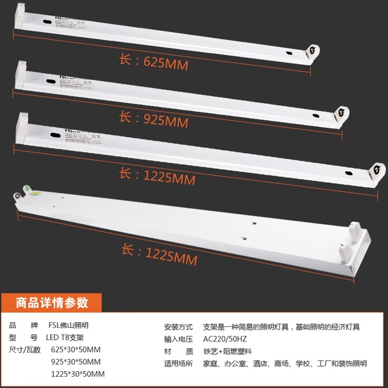 FSL佛山照明T8led灯管空支架单双管全套带罩并联长条日光灯1.2米M