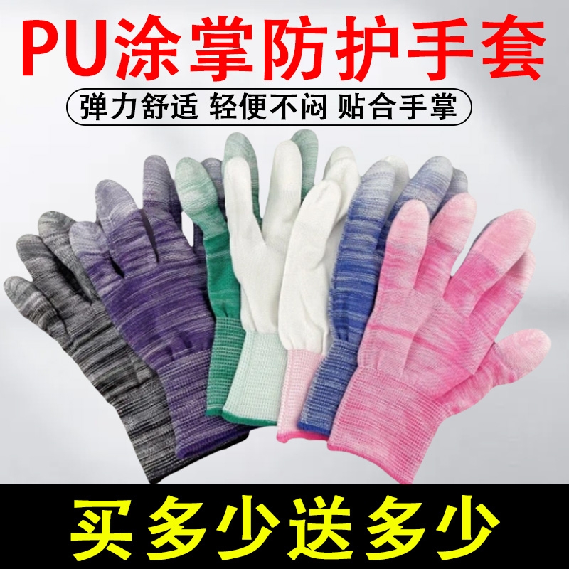 PU涂指手套劳保薄款尼龙耐磨防滑透气涂掌涂胶工地防静电工作耐用