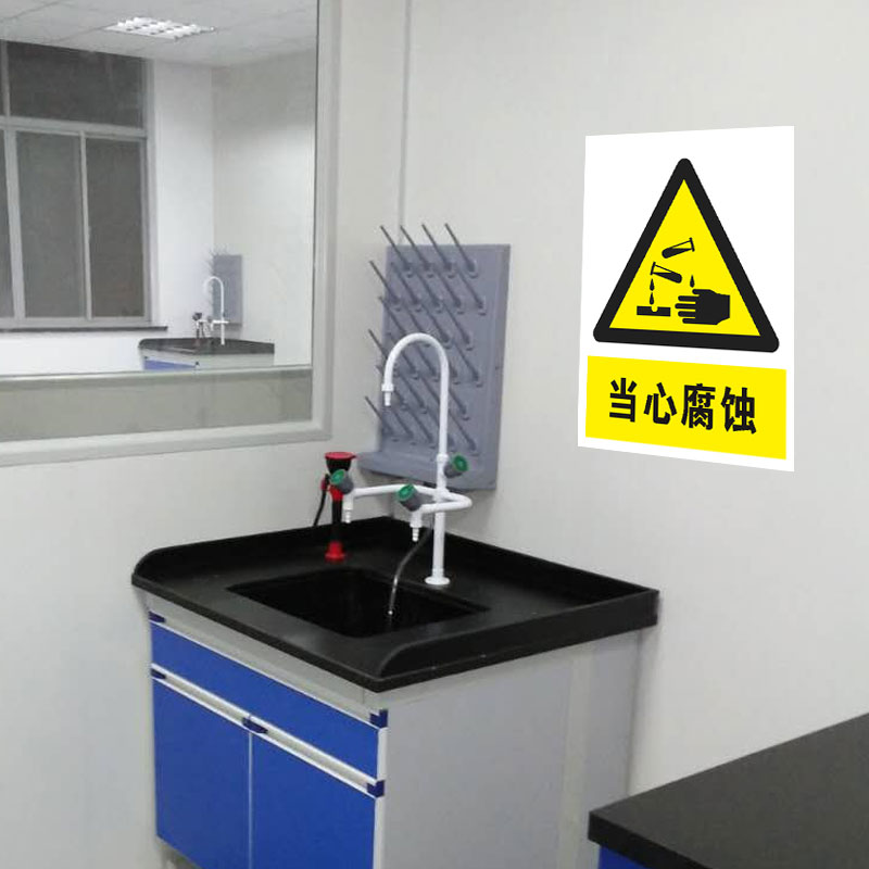 实验室当心腐蚀标识牌化学品提示牌当心中毒灼伤玻璃碎渣安全标识牌当心飞溅安全警示牌当心中毒警示牌贴纸