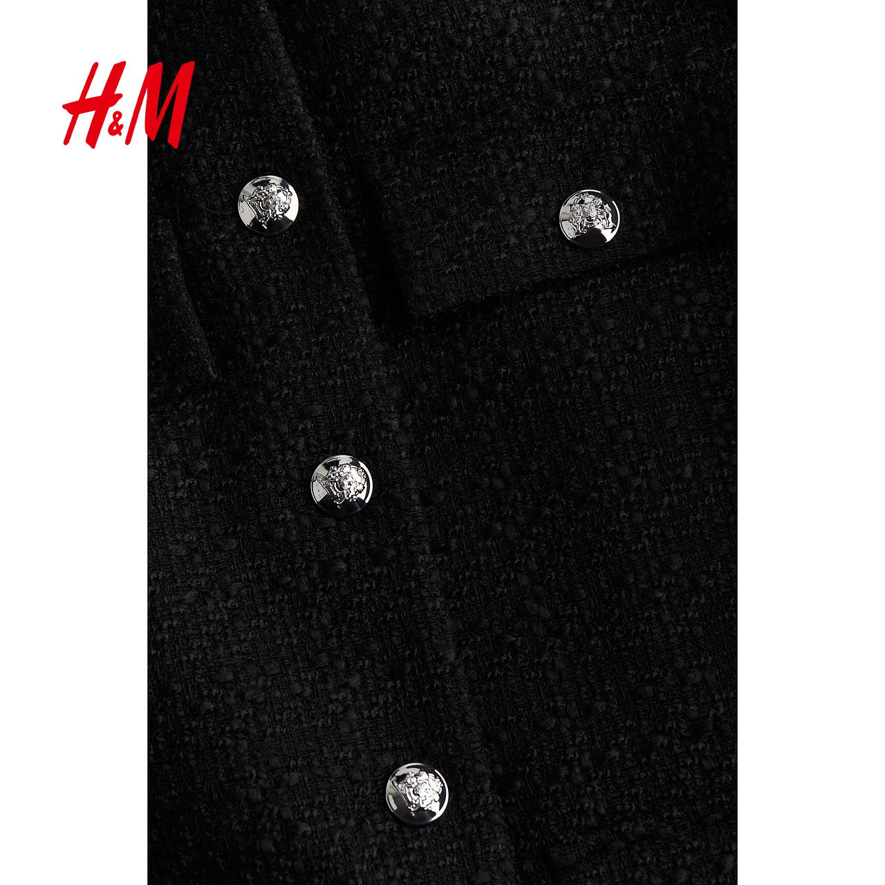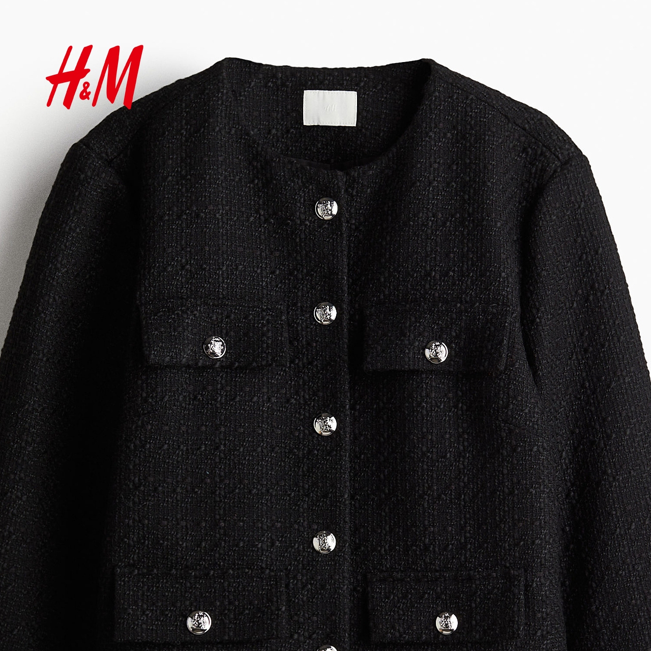 HM女装短外套秋季粗花呢千金小香风圆领长袖廓形排扣外套1231352