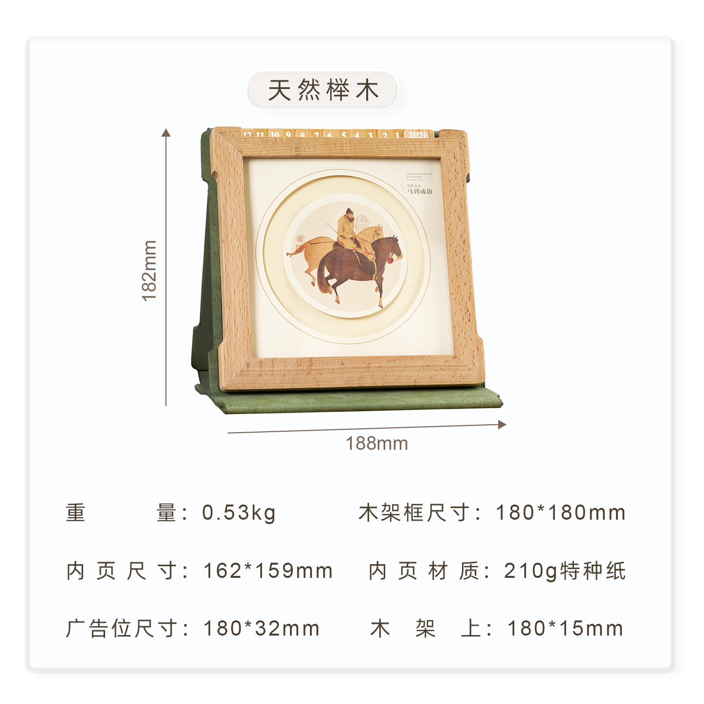 中国风实木相框皮架台历2026年新款定制可印logo公司企业广告专版定做商务办公室创意摆件桌面日历月历批发