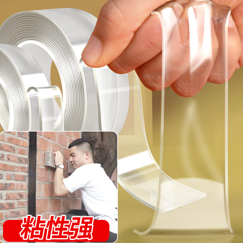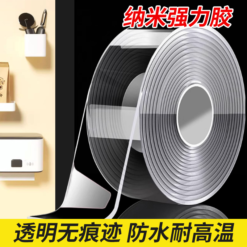 纳米双面胶带高粘度强力胶固定防水胶贴无痕不伤墙面车用万能粘胶免钉胶不易留痕透明魔力贴片纳米两面贴胶布