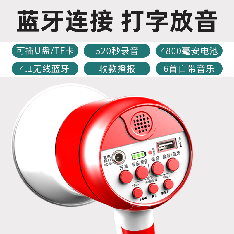 蓝牙手持喊话器喇叭扬声器扩音器播报高音大声公宣传录音地摊导游