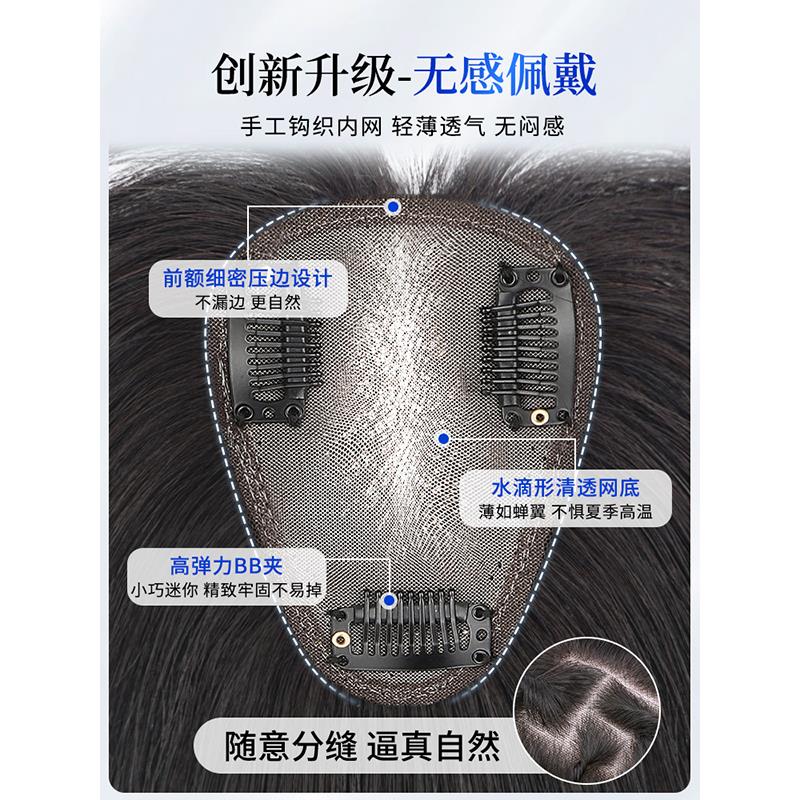 真人发丝刘海假发女补发蓬松真发遮白发高颅顶增发量轻薄无痕