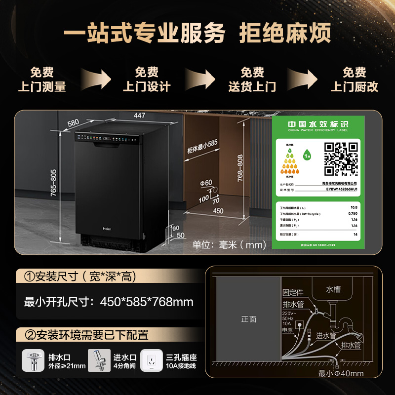 海尔超窄洗碗机X11/S双面洗14套大容量家用消毒全自动嵌入式变频