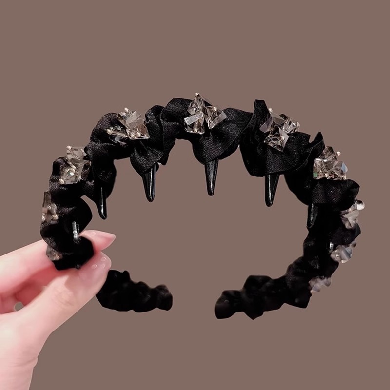 防滑洗脸水钻发箍女2025新款轻奢外戴带齿黑色发卡发饰高颅顶头箍