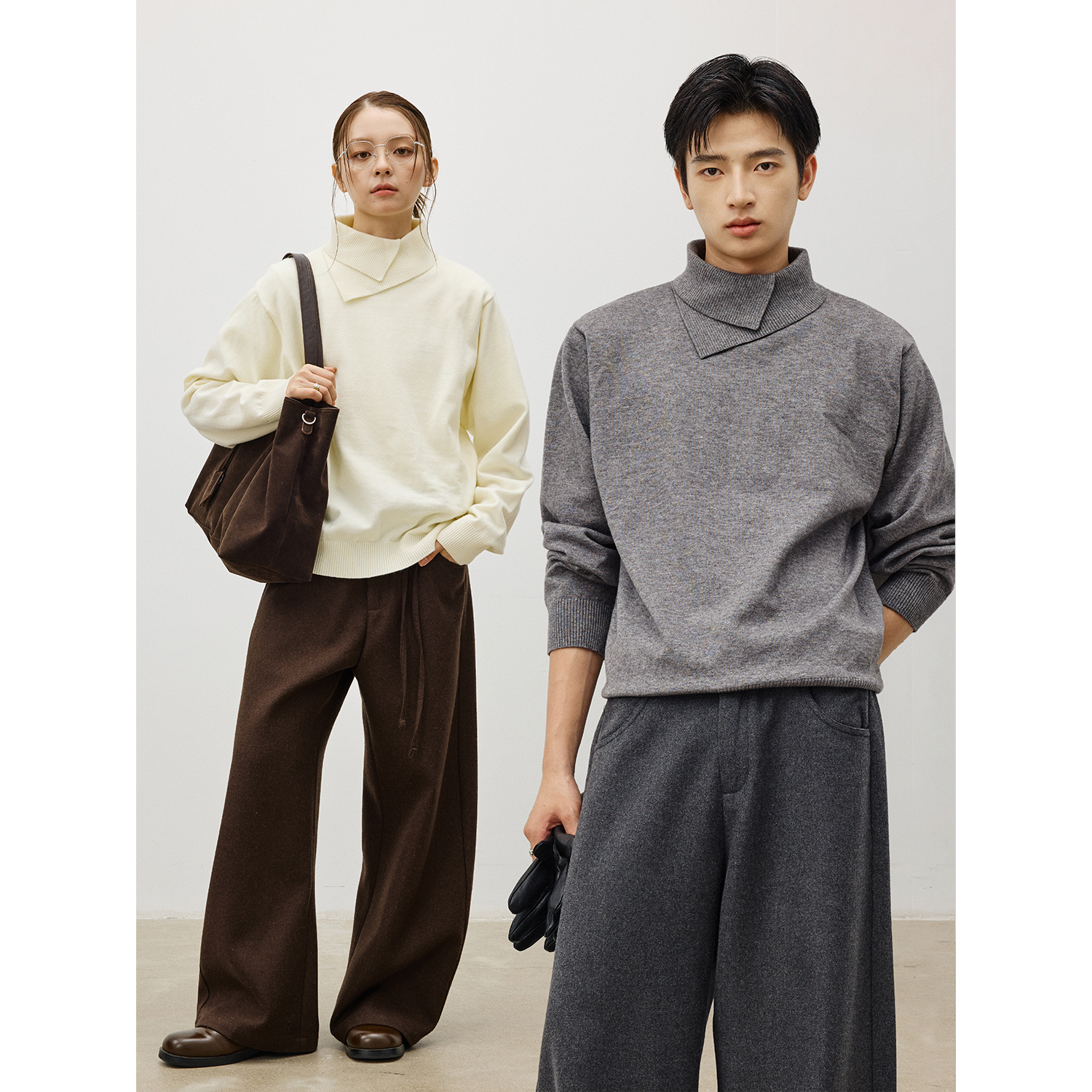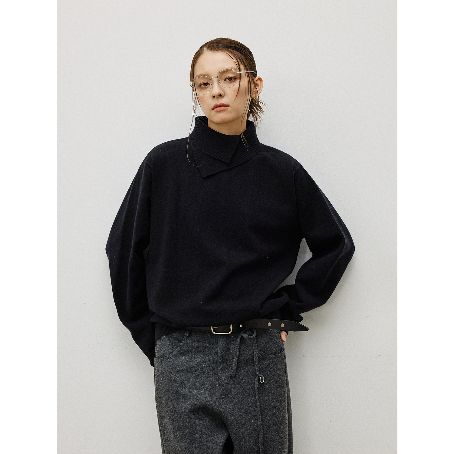 LR MADE 25AW 异形立翻双层领 保暖羊毛 长袖打底高领毛衣针织衫