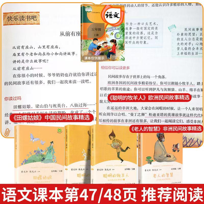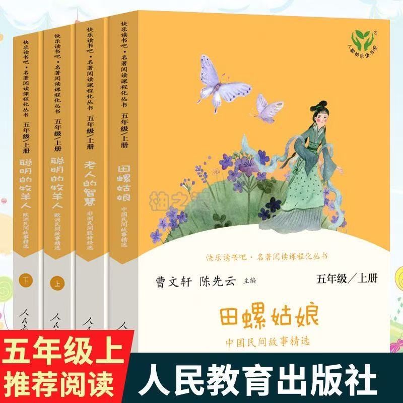 田螺姑娘五年级上册快乐读书吧2025人教版全套老人的智慧聪明的牧羊人全套4册曹文轩人民教育出版社正版包邮儿童课外读物老师推荐