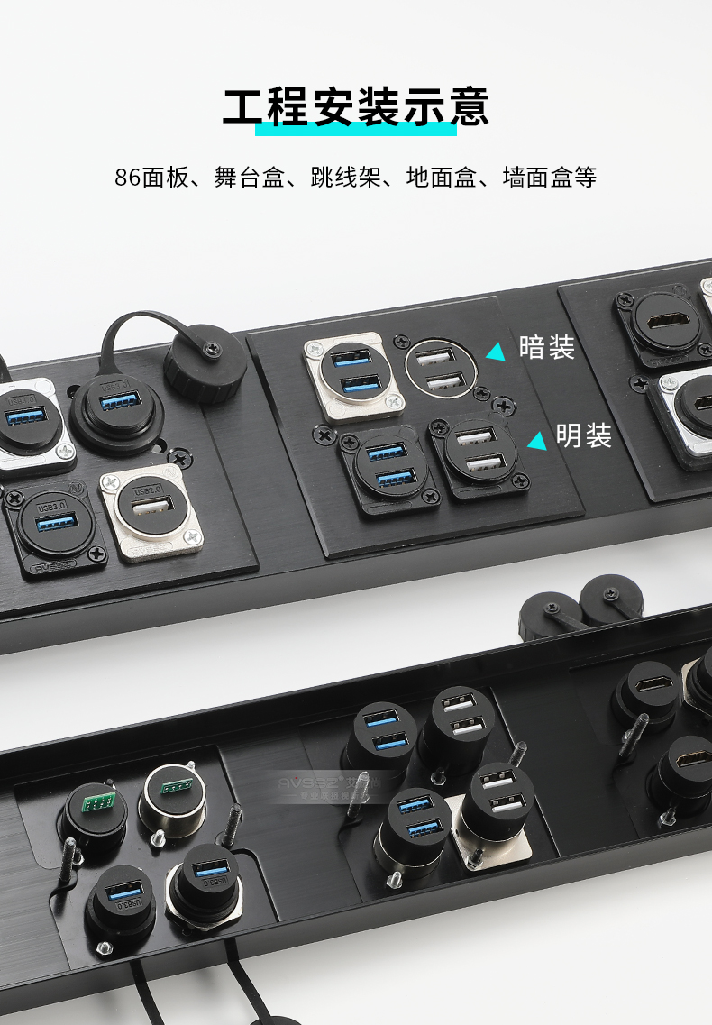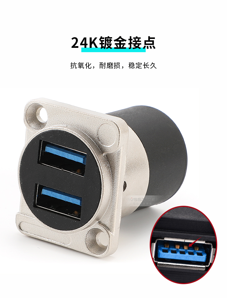 USB3.0双口母对母D型USB插座86机柜面板通道A口免焊两个数据AVSSZ