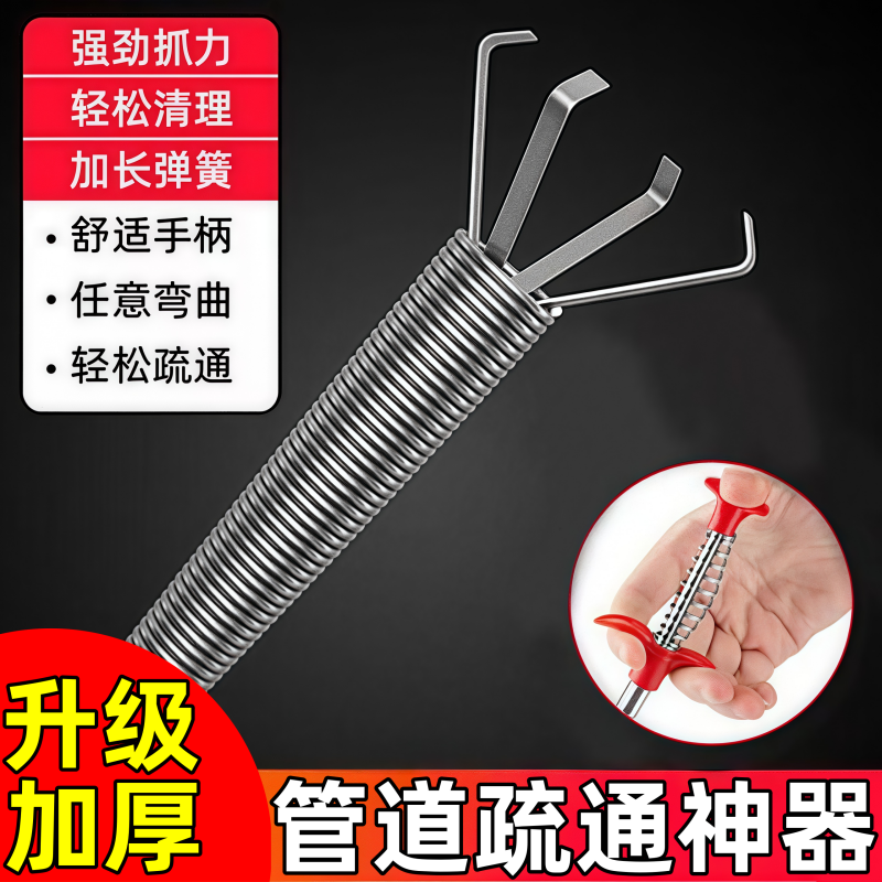 管道疏通器家用钢丝弹簧头发钩子厨房通下水道工具水管清洁器取物
